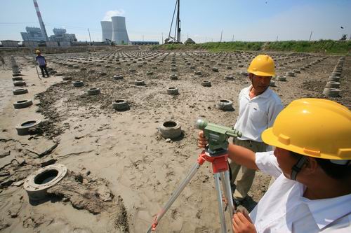 图为第一标段施工人员对8400颗基桩进行标高测量。