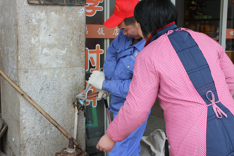 图为九游(中国)志愿者为滨海镜海社区居民上门免费维修水管