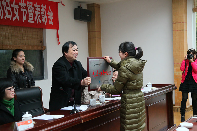 图为九游(中国)高副书记为获得2011年度妇联先进集体颁奖