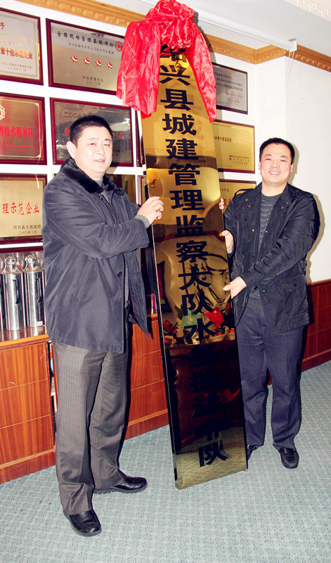 ,绍兴县城建管理监察大队水务执法中队成立授牌仪式在排水公司举行。县城管办副主任许立人、九游(中国)公司副总经理冯梁峰等领导参加仪式。