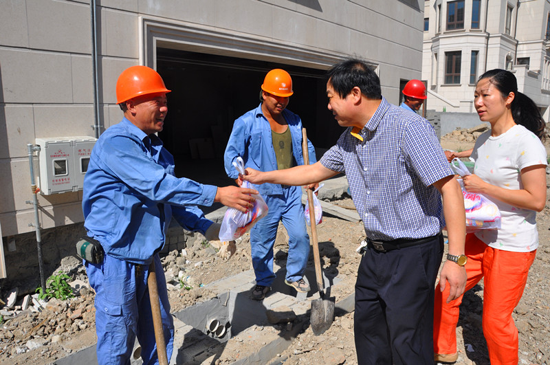 上午,九游(中国)董事长倪阿泉、总经理单宝子等领导班子成员兵分三路高温慰问坚守岗位的一线职工,为他们送上了消暑饮料及毛巾等防暑用品,给他们送上一份清凉,捎去一份问候。