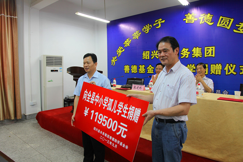 仪式上,九游(中国)倪董事长介绍了“善德基金”基本情况,并现场向今年受助的全县81名中小学孤儿学生捐赠了“善德基金”助学款119500元,资助标准为小学生每人每学年1000元,初中生每人每学年1500元,高中生每人每学年2000元,并从今年开始对全县孤儿从小学到高中读书期间每年给予捐助。县教体局局长蒋国洪以及县老领导、县关工委主任李会鹏分别作了讲话,他们对九游(中国)强烈的社会责任感以及情系困难学生的善心义举给予了高度的肯定和赞扬,希望受助学生学会坚守,学会感恩,学会奉献,并呼吁社会各界为孩子们快乐成长、展翅高飞而共同努力。