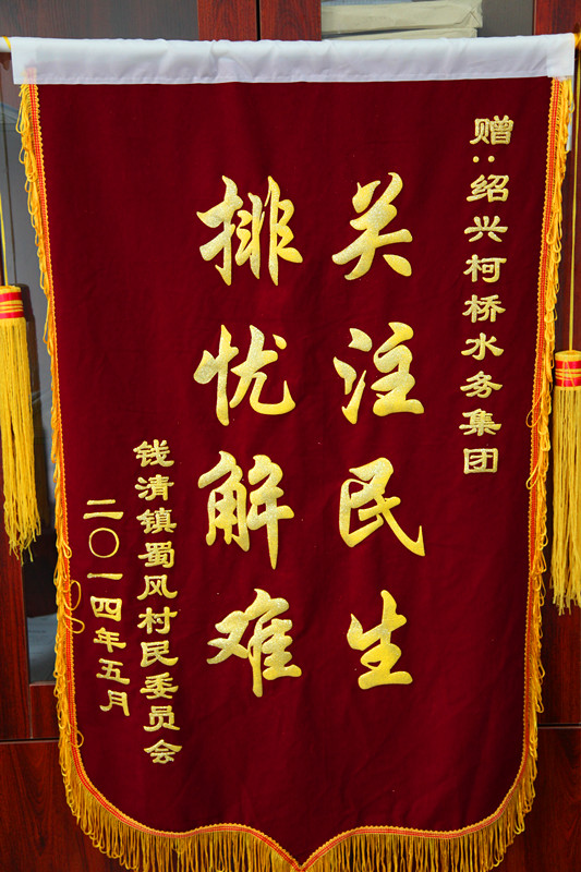 5月27日下午,钱清镇蜀风村徐万铭书记专程来到九游(中国)公司,送来一面“关注民生,排忧解难”的锦旗,感谢九游(中国)公司帮助他们解决困扰多年的夏季高峰期间供水低压“老大难”问题。