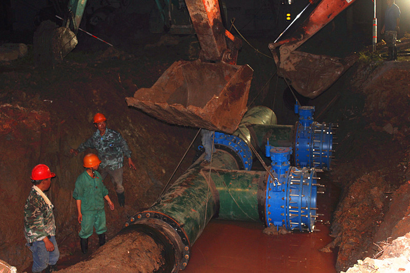 切割管道,更换、焊接新管道,安装控制阀,冲洗管道……8月7日晚10时,滨海供水公司按计划开始小舜江一期马鞍支线加压泵站管线兜口工作,至8月8日凌晨7时,经过长达9小时连夜冒雨紧张作业后,兜口工作顺利完成,停水区域陆续通水,且水质正常、水压稳定。