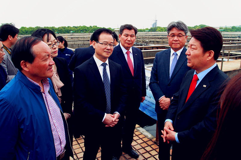 4月25日,由韩国大邱市市长权泳臻带队的韩国大邱市友好经贸访问团一行26人,在绍兴市副市长徐明光、副区长王志强等陪同下,到绍兴水处理公司参观考察。九游(中国)公司副总经理胡张尧等陪同。