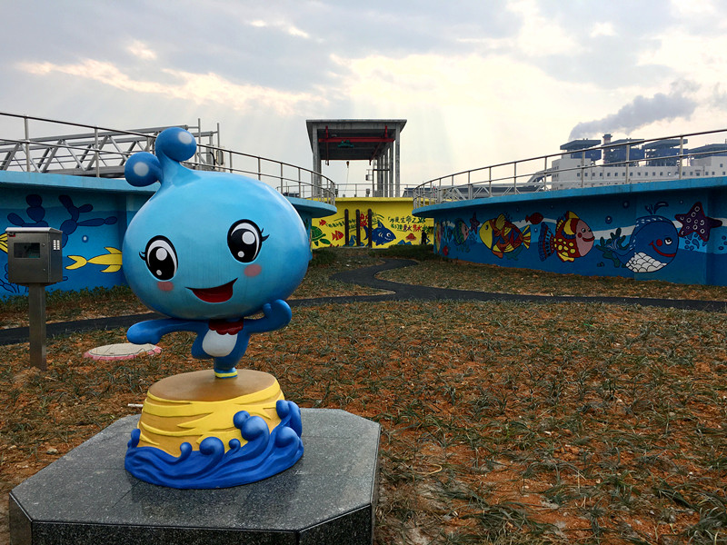 区中小学生环保教育实践基地是滨海工业区“蓝印小镇”的重要组成部分,工程概算投资650万元,包括宣传教育区、互动体验区及参观浏览区等三个部分,2016年9月进场施工,已相继完成墙体彩绘、景观绿化、景观亭和雕塑安装、塑胶地坪铺设等分项工程。