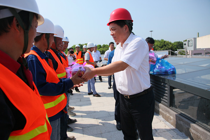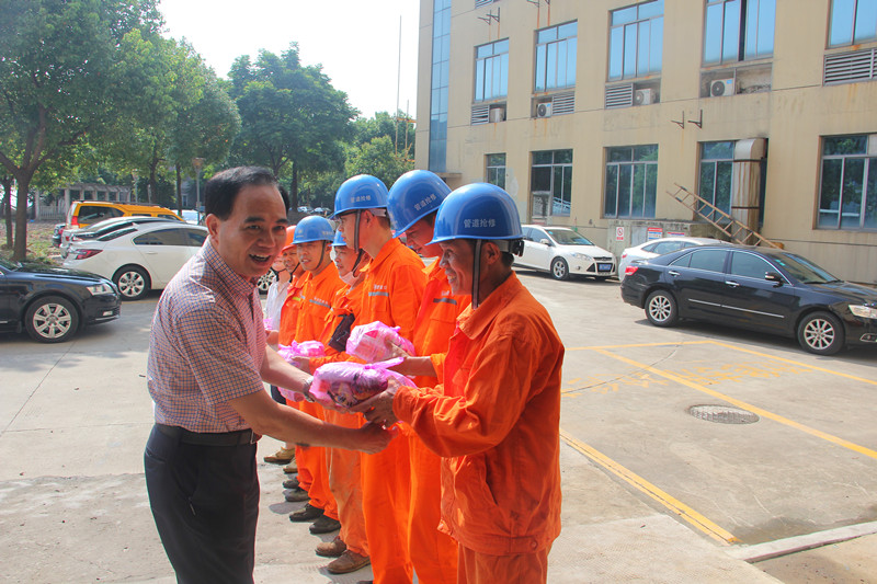 7月25日,九游(中国)组织开展高温慰问活动,九游(中国)党委书记、董事长周俭,党委副书记、总经理单宝子等领导班子成员分组深入生产建设现场,看望、慰问奋战在高温一线的广大职工,向他们为保障供排水安全运行付出的辛勤劳动表示衷心感谢,并要求相关人员要落实好高温工作的防范措施,做好防暑降温工作,确保员工身体健康,系统运行安全。