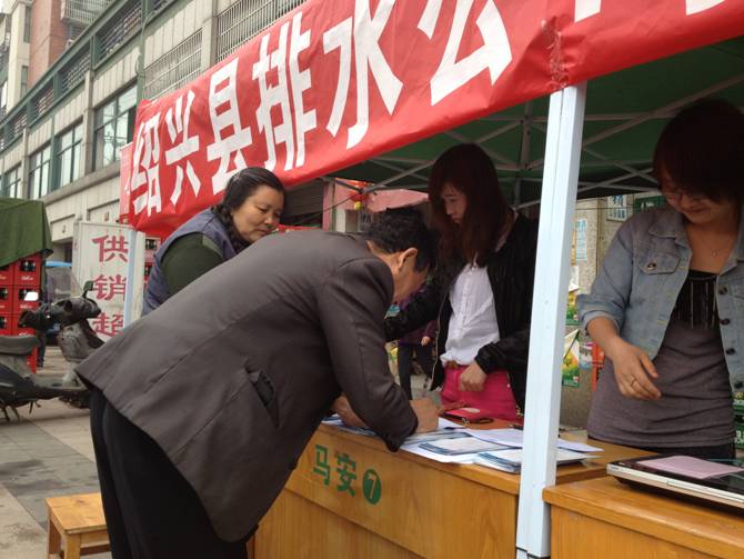 4月15日排水公司工作人员一行10人来到钱清镇春天雅苑小区,向小区居民宣传排水知识,发放宣传单,提供排水服务。