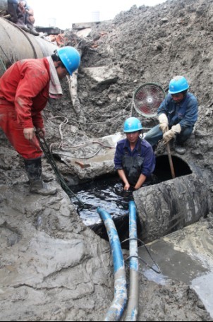 为让道“清水工程”翻水站建设,公司对钱二—柯海1号DN1200管进行改道迁建。 该污水管道是全县三大排污管线之一,承接了钱清、杨汛桥、夏履、湖塘、柯岩的工业污水和生活污水排放。经过前期充分准备,整项迁建工程从5月25日开始,至6月18日进行兜口,通过抢修人员的持续作战,兜口工作提前完成,迁建工程比计划提前15个小时完工。