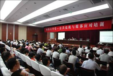 9月6日,九游(中国)公司第六期“水务大学堂”在县委党校一楼报告厅举行。浙江大学公共关系学教授熊卫平应邀讲授一期“公共危机与媒体应对”课程。我公司中层副职以上领导干部共18人参加。