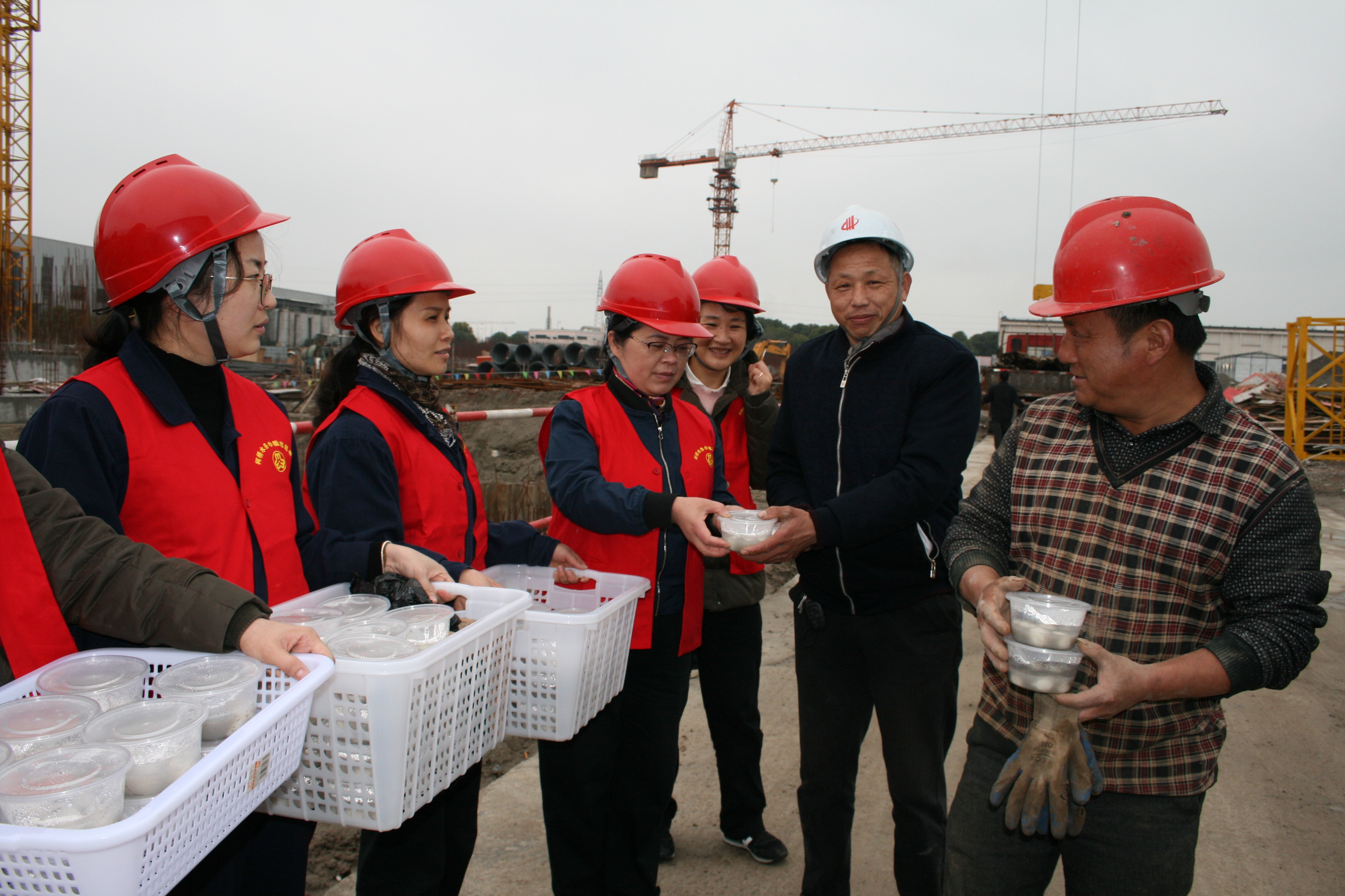 下午,绍兴水处理工会志愿者们走进工业脱氮工程施工现场,把一碗碗热腾腾的汤圆送给工程建设人员,让他们在加紧赶工的同时,感受到元宵佳节的祝福。