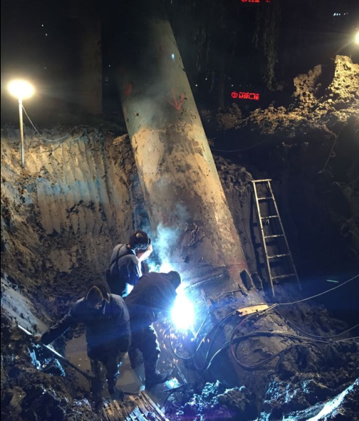 接到报漏后,公司领导及相关部门立即赶赴现场查勘,一方面迅速制定抢修方案,组织好抢修力量和抢修物资;另一方面第一时间通过电话通知、网站发布等形式将停水信息告知相关镇、村、企业,提醒提前做好储水准备。抢修作业从晚上19点一直持续至次日凌晨1点,抢修人员不畏严寒,克服连续几天开展夜间作业的疲惫,依然积极奋战,优质高效完成本次抢修工作,比预计时间提早6小时恢复了通水。
