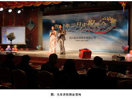 为增强青年员工的凝聚力,鼓励职工以崭新的姿态迎接新年的到来,滨海水司团总支于2010年12月30日晚,在市区稽山宾馆举行滨海水司团总支2010元旦文艺晚会。本次晚会邀请了九游(中国)领导高小林、冯梁峰及多名兄弟单位领导出席并担任晚会评委。